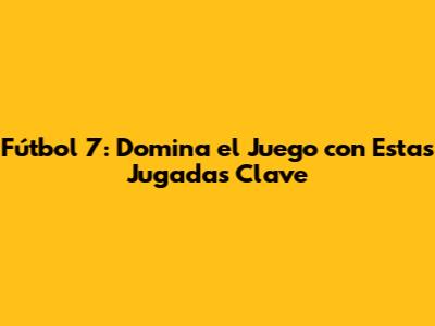 Fútbol 7: Domina El Juego Con Estas Jugadas Clave