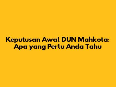 Keputusan Awal DUN Mahkota: Apa Yang Perlu Anda Tahu